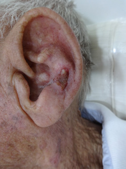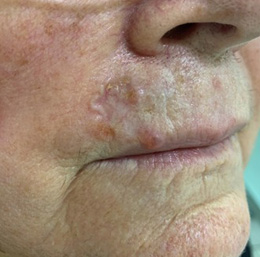 Cirurgia Micrográfica de Mohs (onde a lesão é removida por etapas, sendo todas as margens cirúrgicas avaliadas ao microscópio durante a própria cirurgia).
